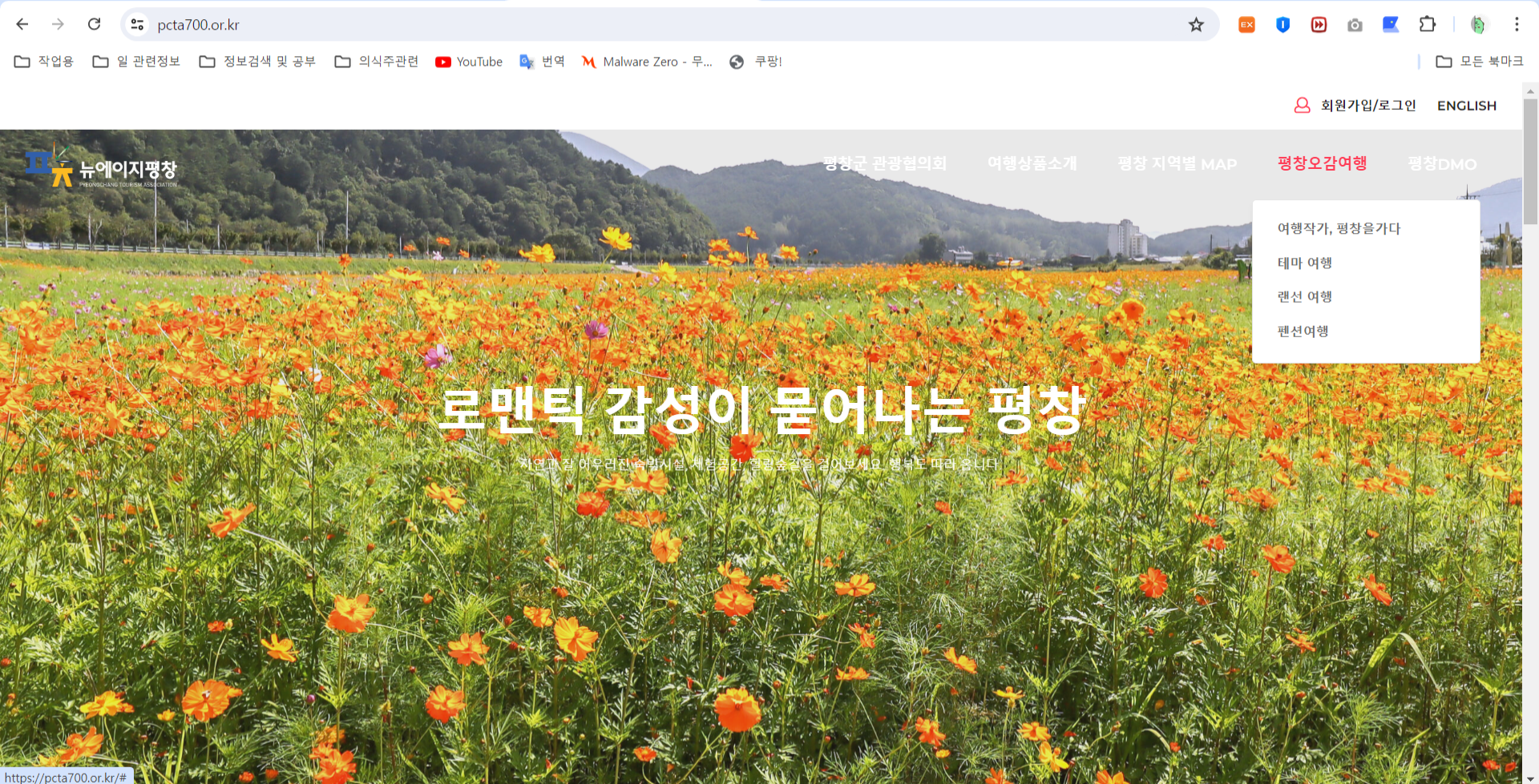 평창군관광협의회 홈페이지는 찾아서 들어가는 게 쉽지 않았고 어쩐 일인지 자꾸만 광고가 연동됐다.